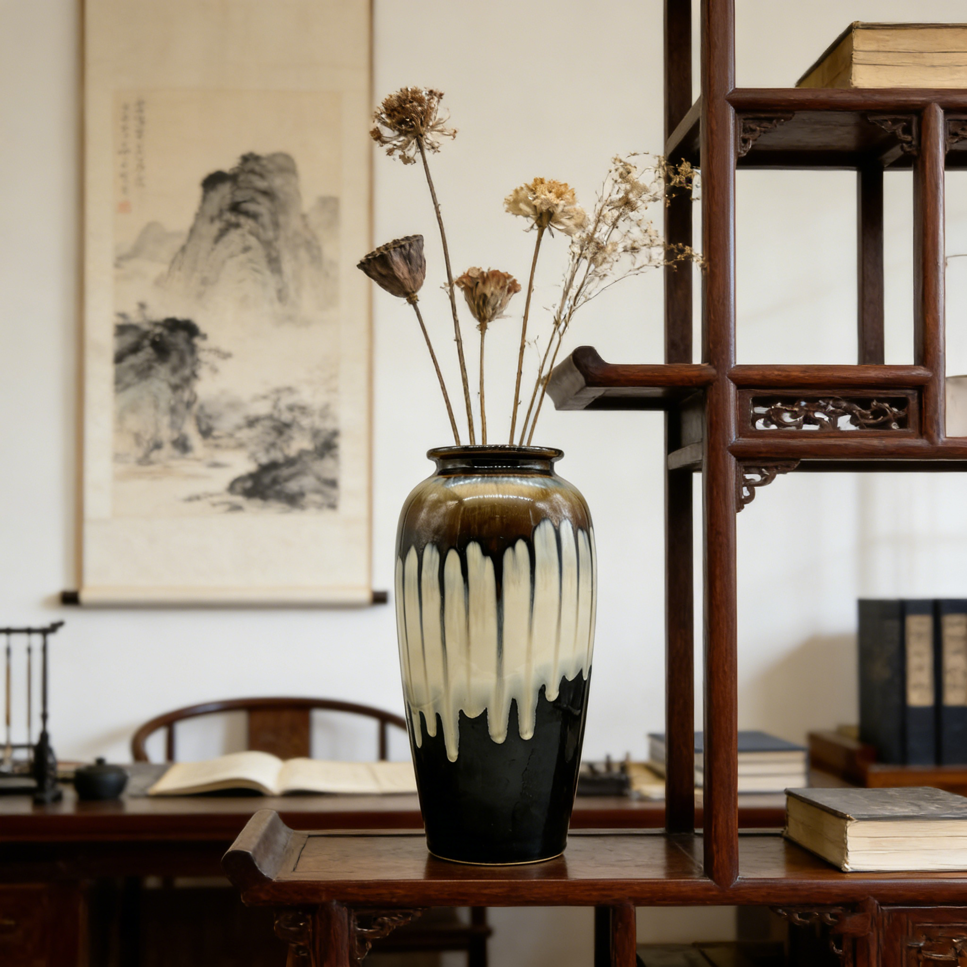 Black Base White Glaze Drip Glaze Kiln-Transformed Straight Vase