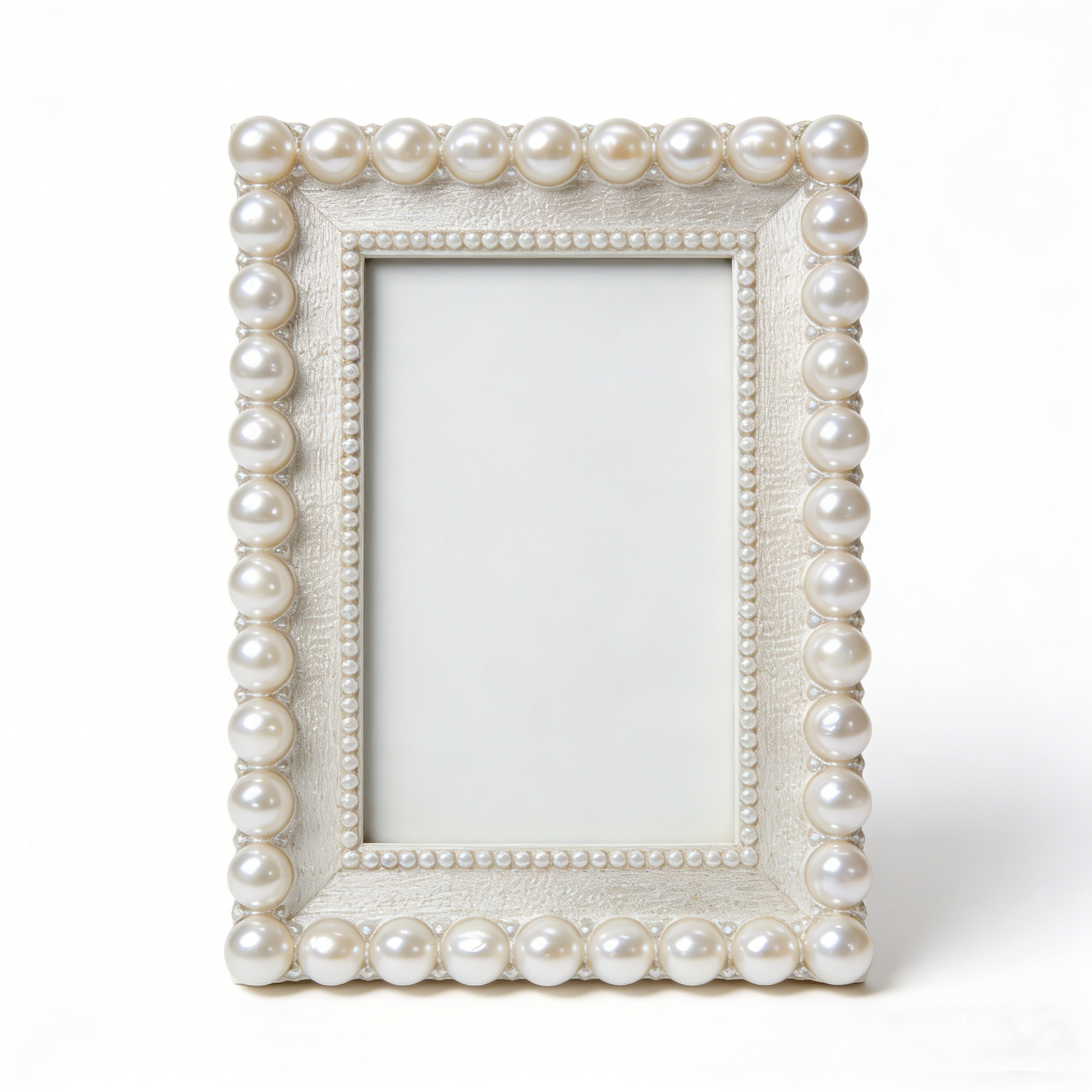 Pearl Inlaid Light Luxury Photo Frame, alloy frame with hand-inlaid faux pearls and glossy finish. Size: 18×23cm (7×9inch). Light luxury design, perfect for wedding photos and elegant bedroom decor.